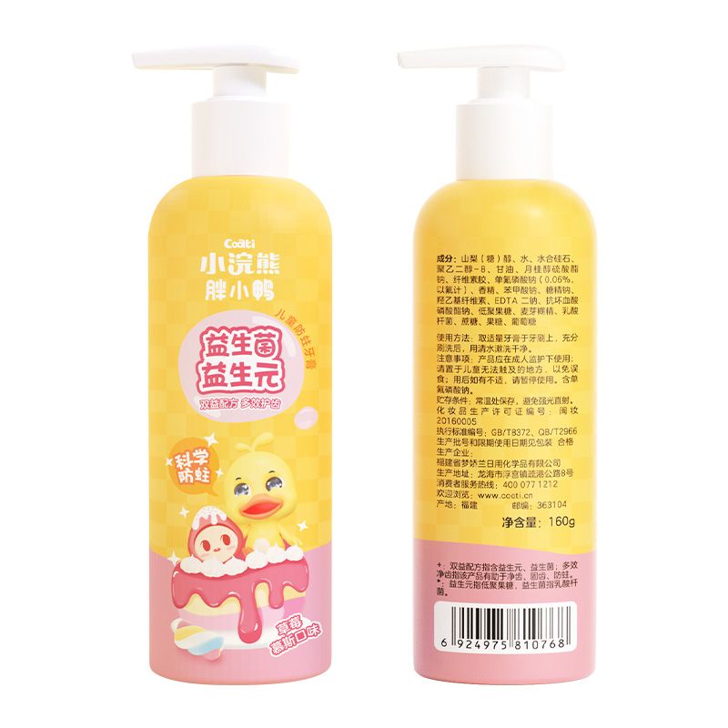 小浣熊胖小鸭儿童防蛀牙膏 160g*2支