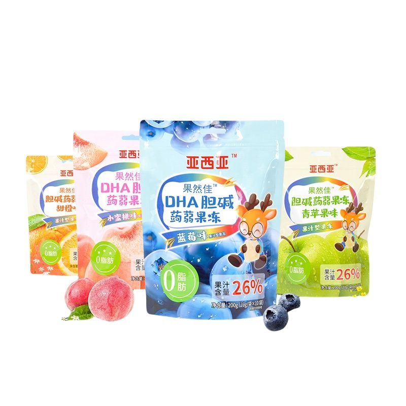 亚西亚 DHA+胆碱蒟蒻果冻200g*4袋 (青苹果/甜橙/蓝莓/水蜜桃)"