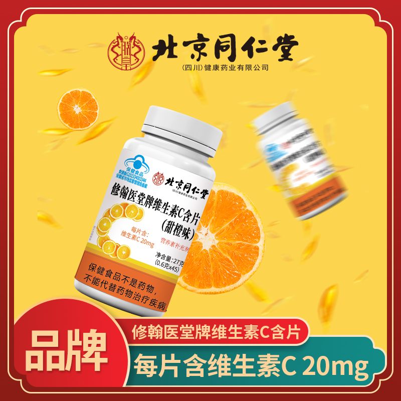 北京同仁堂维生素c咀嚼含片甜橙味儿童成人补充vc