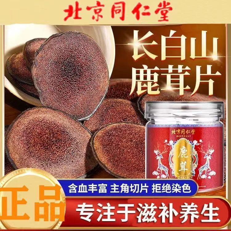 2瓶北京同仁堂鹿茸10g切片红粉片含血量足鹿鞭切片泡酒料滋补泡水喝泡茶