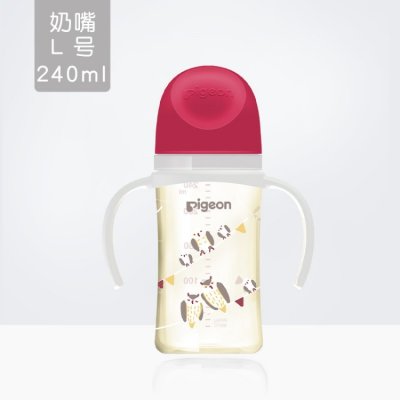 日本 贝亲(Pegion)“自然实感Ⅲ”宽口径彩绘PPSU双把手奶瓶 猫头鹰 L号奶嘴 240ml AA221