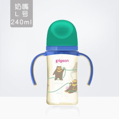 日本 贝亲(Pegion)“自然实感Ⅲ”宽口径彩绘PPSU双把手奶瓶 马来熊 L号奶嘴 240ml AA220