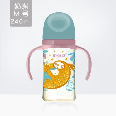 日本 贝亲(Pegion)“自然实感Ⅲ”宽口径彩绘PPSU双把手奶瓶 树懒宝宝 M号奶嘴 240ml
