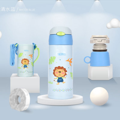 日本 膳魔师(Thermos)lion系列高真空儿童双盖保温杯保冷杯吸管杯(蓝色)630ml FFG-603WF