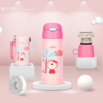 日本 膳魔师(Thermos)lion系列高真空儿童双盖保温杯保冷杯吸管杯(粉色)630ml FFG-603WF