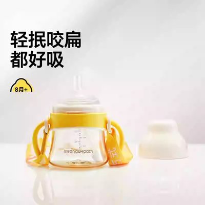 【背带款】皇宠 好吸奶瓶吸管学饮杯 海贝白 330ml 适用8月+
