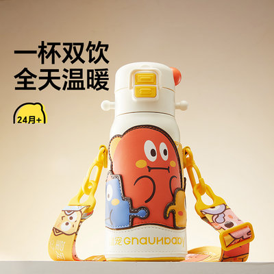 【背带款】皇宠 儿童直饮吸管锁温保温杯 550ml 适用2岁+
