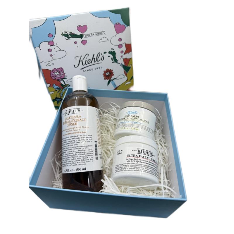 【赠礼盒礼袋】Kiehl's/科颜氏组合三件套 白泥125ML+高保湿霜125ML+金盏花水500ML