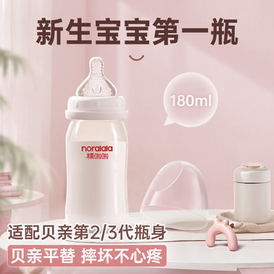 糯啦啦 Noralala 新生婴儿防胀气宽口径玻璃奶瓶 180ml【升级款】 S奶嘴