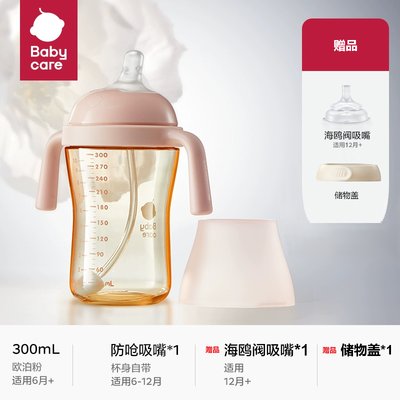 【买赠】Babycare 歪头仿母乳防呛学饮杯 欧泊粉 300ml 赠吸嘴*1+储存盖*1