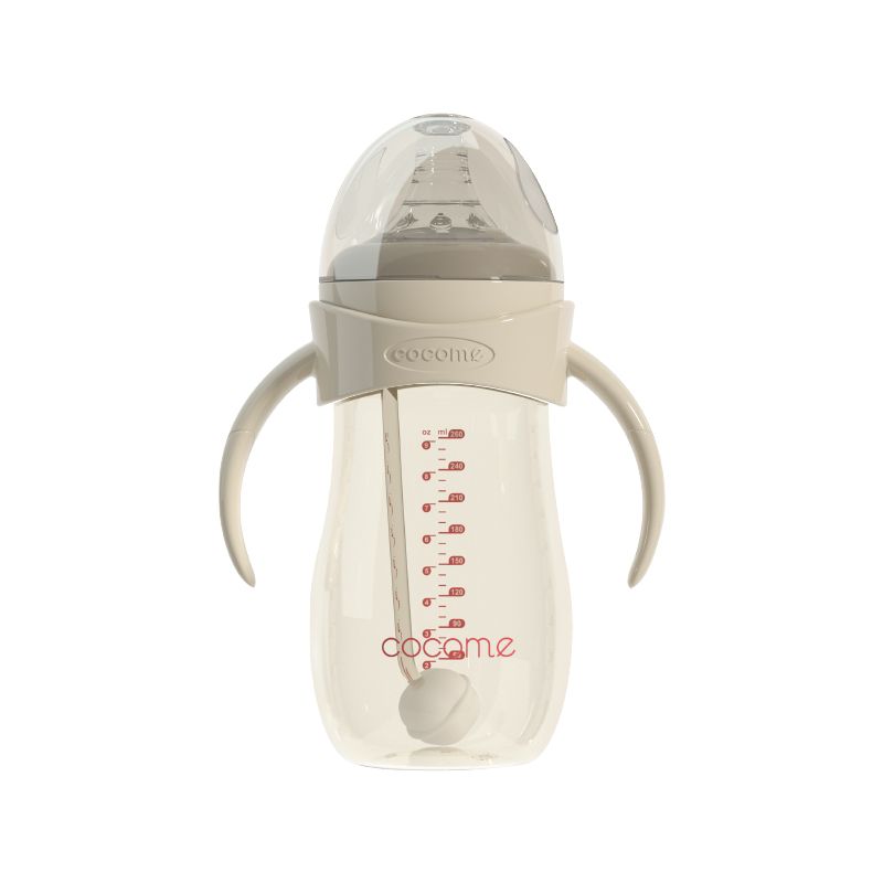 奶爸爸(Nice Papa)翻盖奶瓶240ml-十字孔L码-卡其白(有吸管)