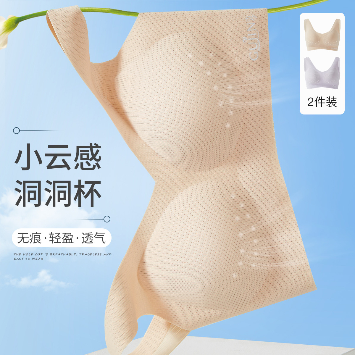 【2件装】洞洞杯内衣女无钢圈裸感无痕透气美背内衣聚拢文胸一体 314443