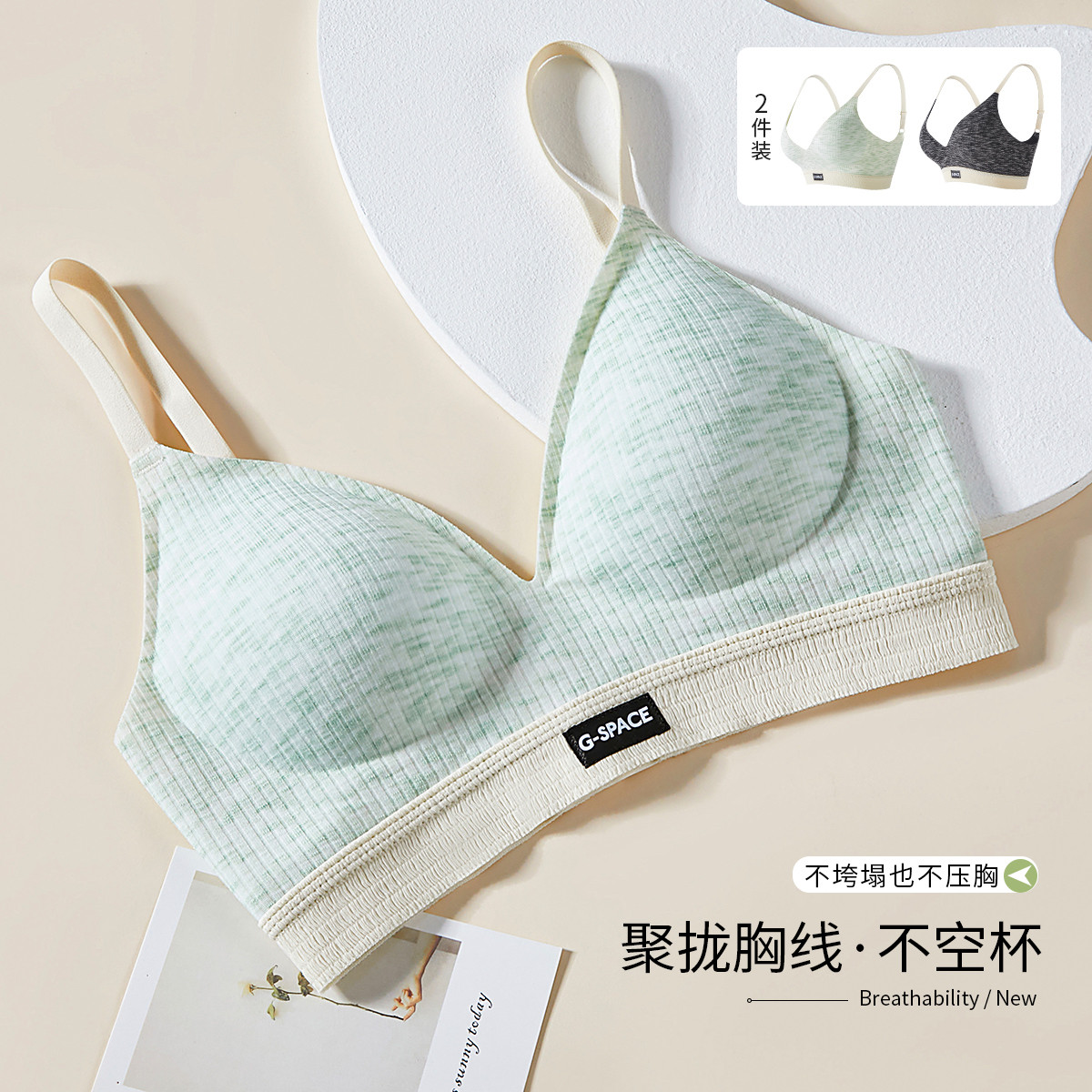 【2件装】内衣女小胸聚拢不空杯可外穿无痕软支撑无钢圈文胸罩女 874507