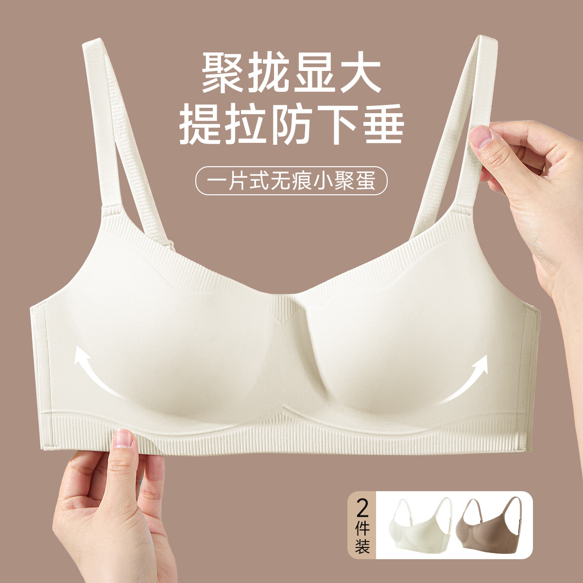 【2件装】无痕一片式光面隐形侧收副乳小胸聚拢无钢圈文胸罩内衣 776203