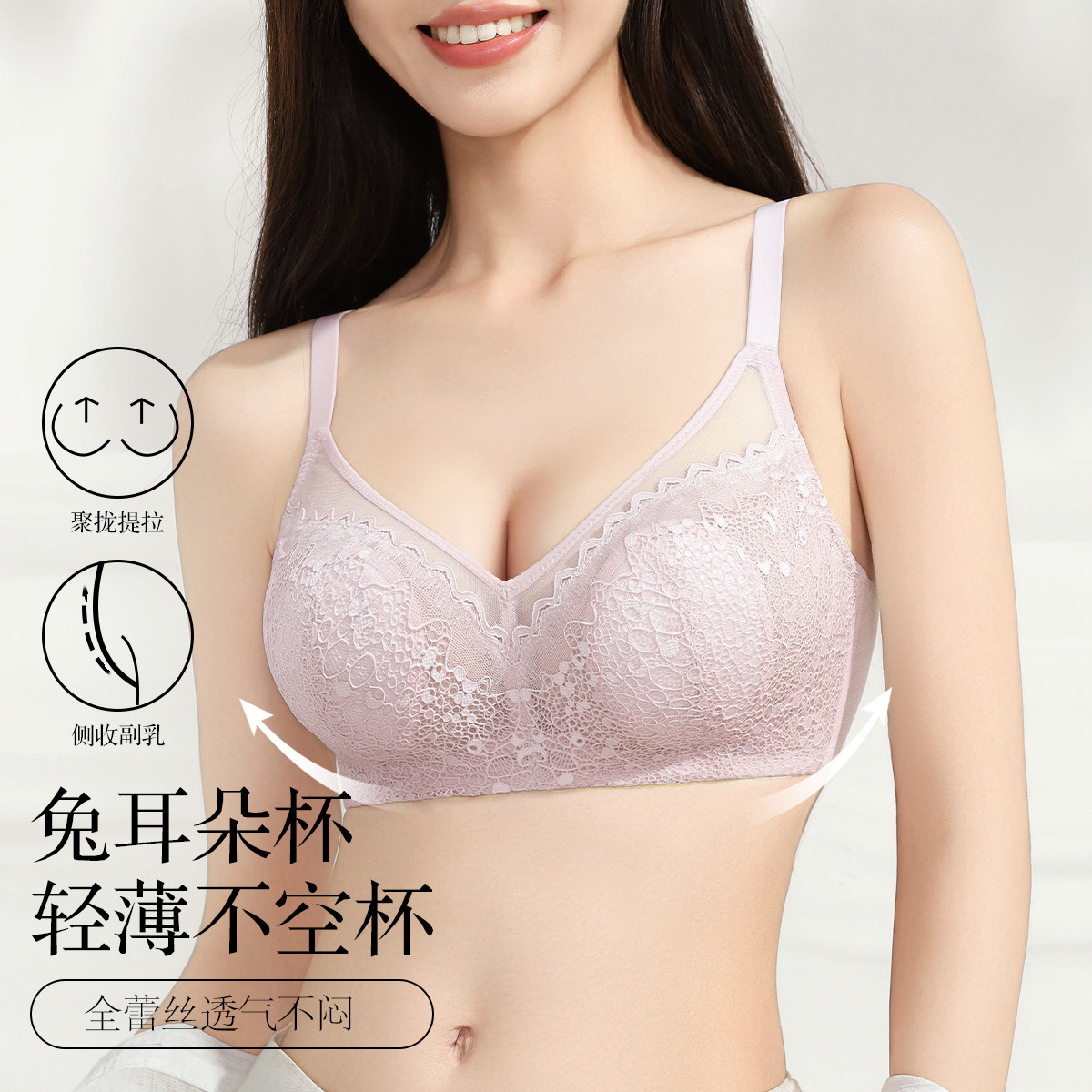 【轻薄花瓣兔耳杯】无钢圈性感蕾丝内衣女聚拢文胸罩防凸点薄杯女 711883