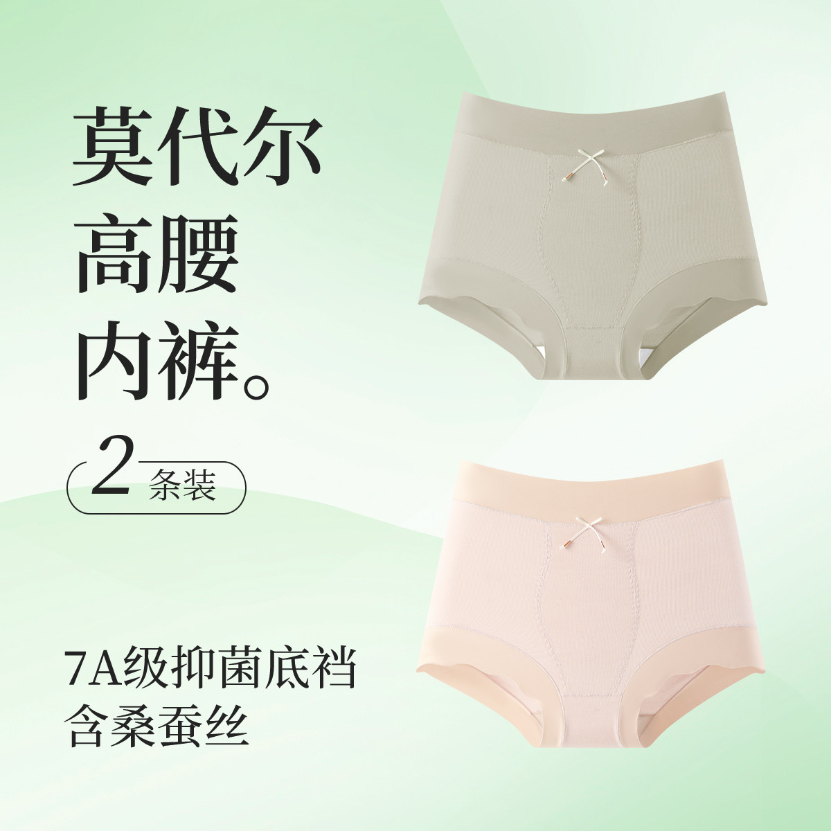 【高腰7A抑菌】2条装莫代尔内裤女士收腹纯色含桑蚕丝裆内裤 394699