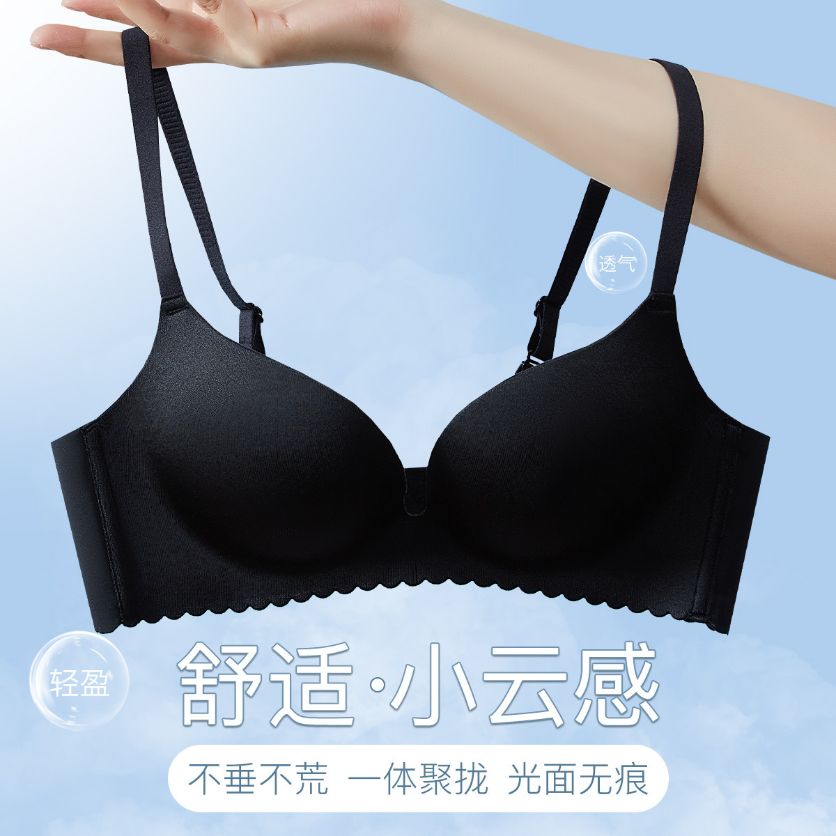 【小胸专属】内衣女无钢圈光面无痕收副乳裸感美背一体文胸罩女士 963915
