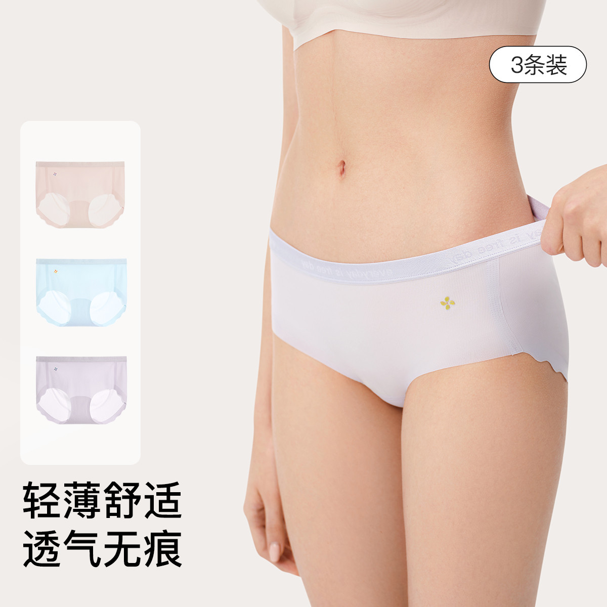 【透气】3条装字母织带中腰三角裤无痕抗菌女士内裤 660352