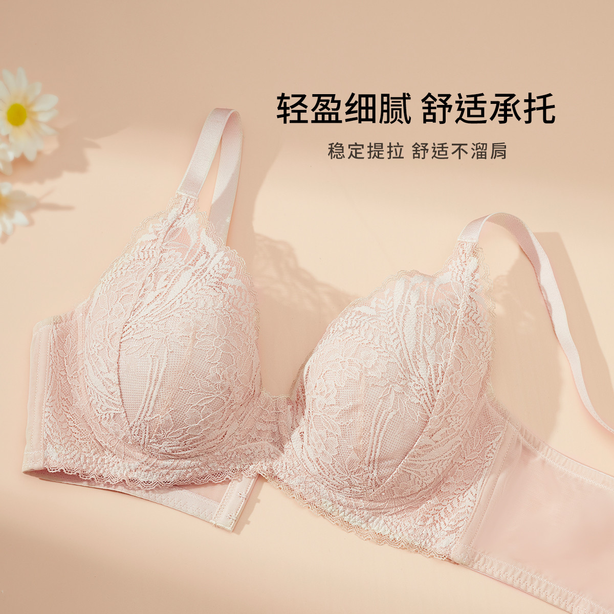 【法式优雅】内衣女光面无痕交叉蕾丝网纱聚拢提拉防下垂文胸罩 319838