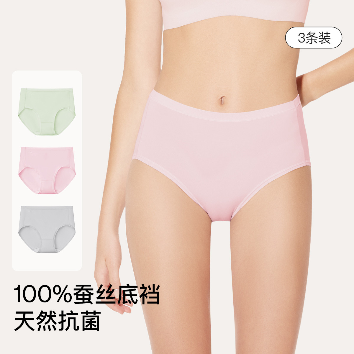 【抗菌底裆】纯桑蚕丝高腰内裤无痕薄款三角裤女士3条装夏季 167488