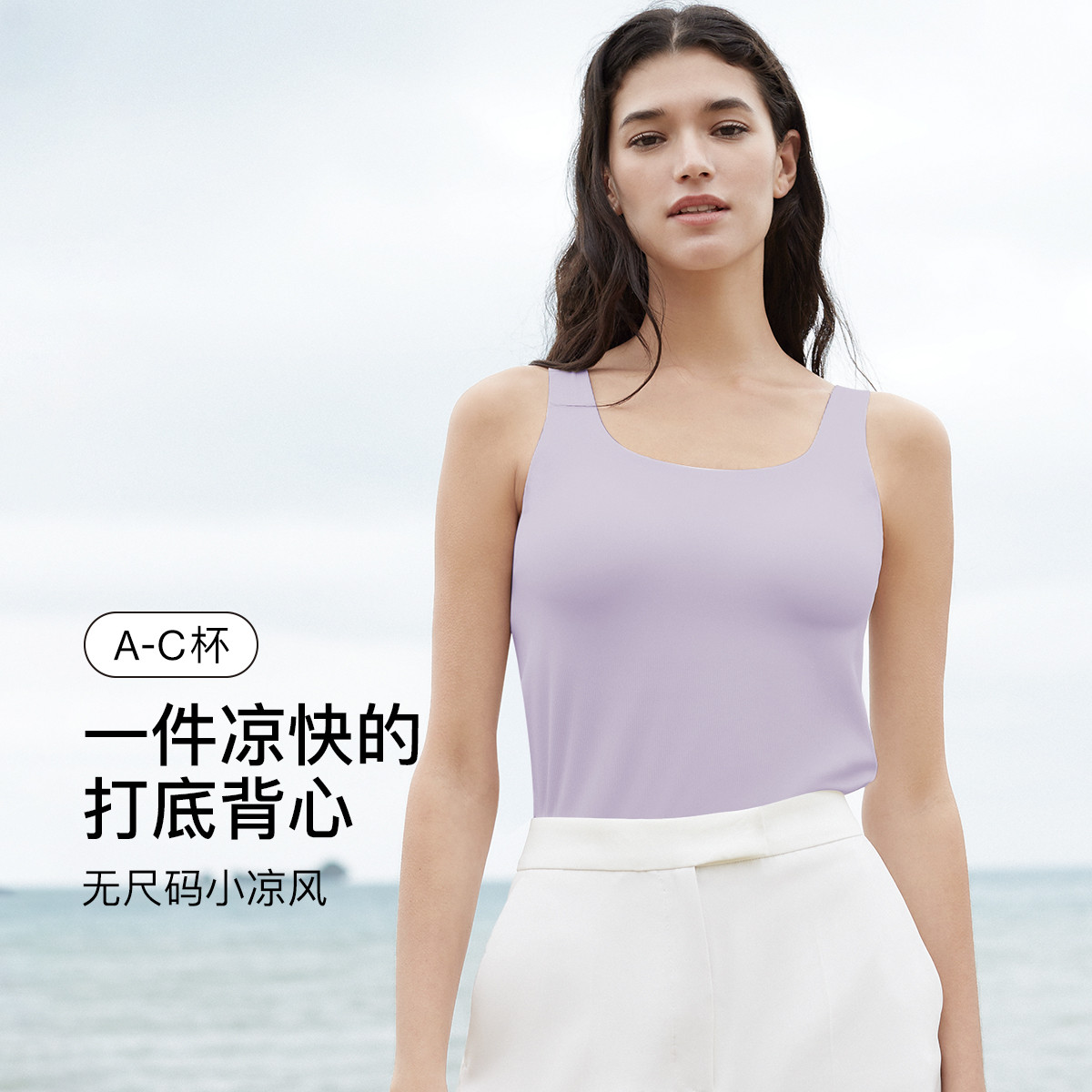 【刘雯同款】无尺码带胸垫背心透气一体免穿内衣吊带女 100864