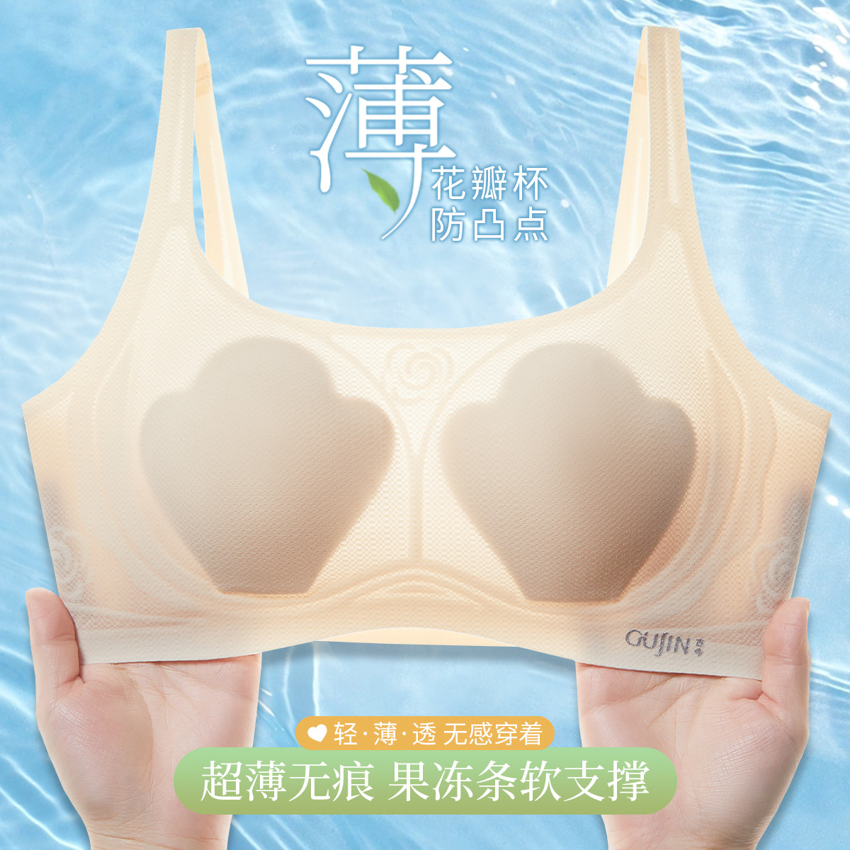 【冰丝面膜花瓣杯】防凸点内衣女大胸显小透气裸感无钢圈文胸罩女 277771
