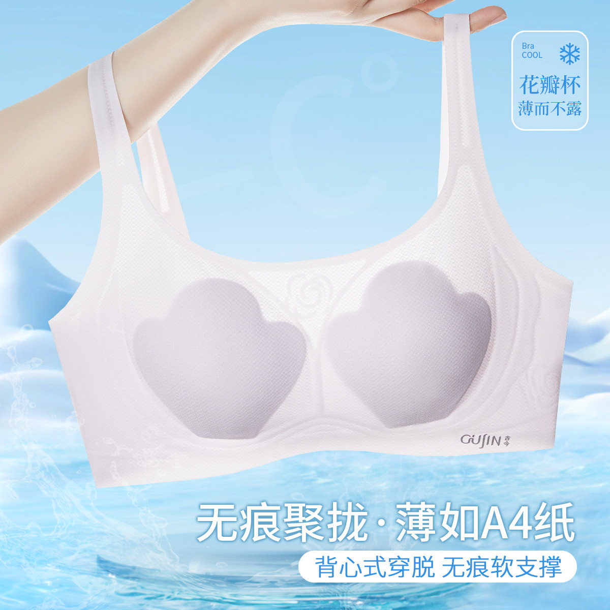 【冰丝面膜花瓣杯】防凸点内衣女大胸显小透气裸感无钢圈文胸罩女 449803