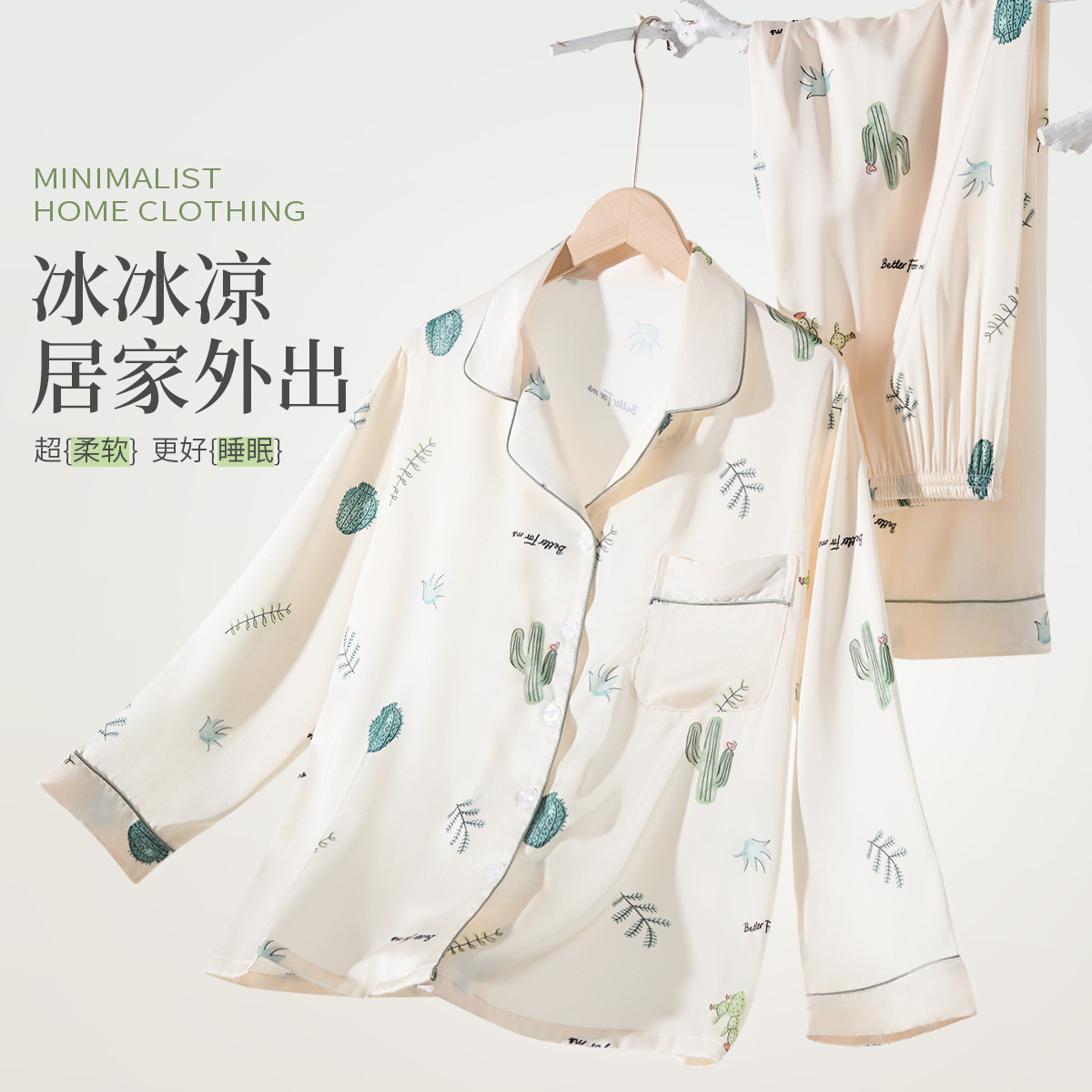 【7A抗菌】女士冰丝睡衣春夏款可外穿长袖家居服睡衣套装女 871883