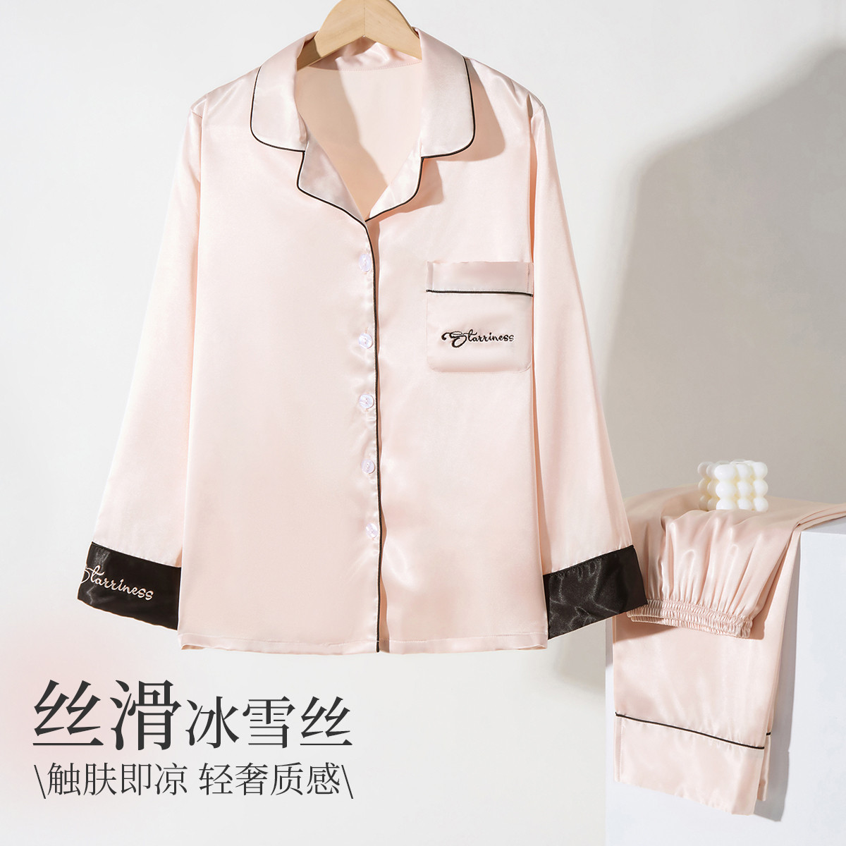 【丝滑牛奶丝】女士高级感冰丝睡衣春夏长袖可外穿家居服套装女 880075
