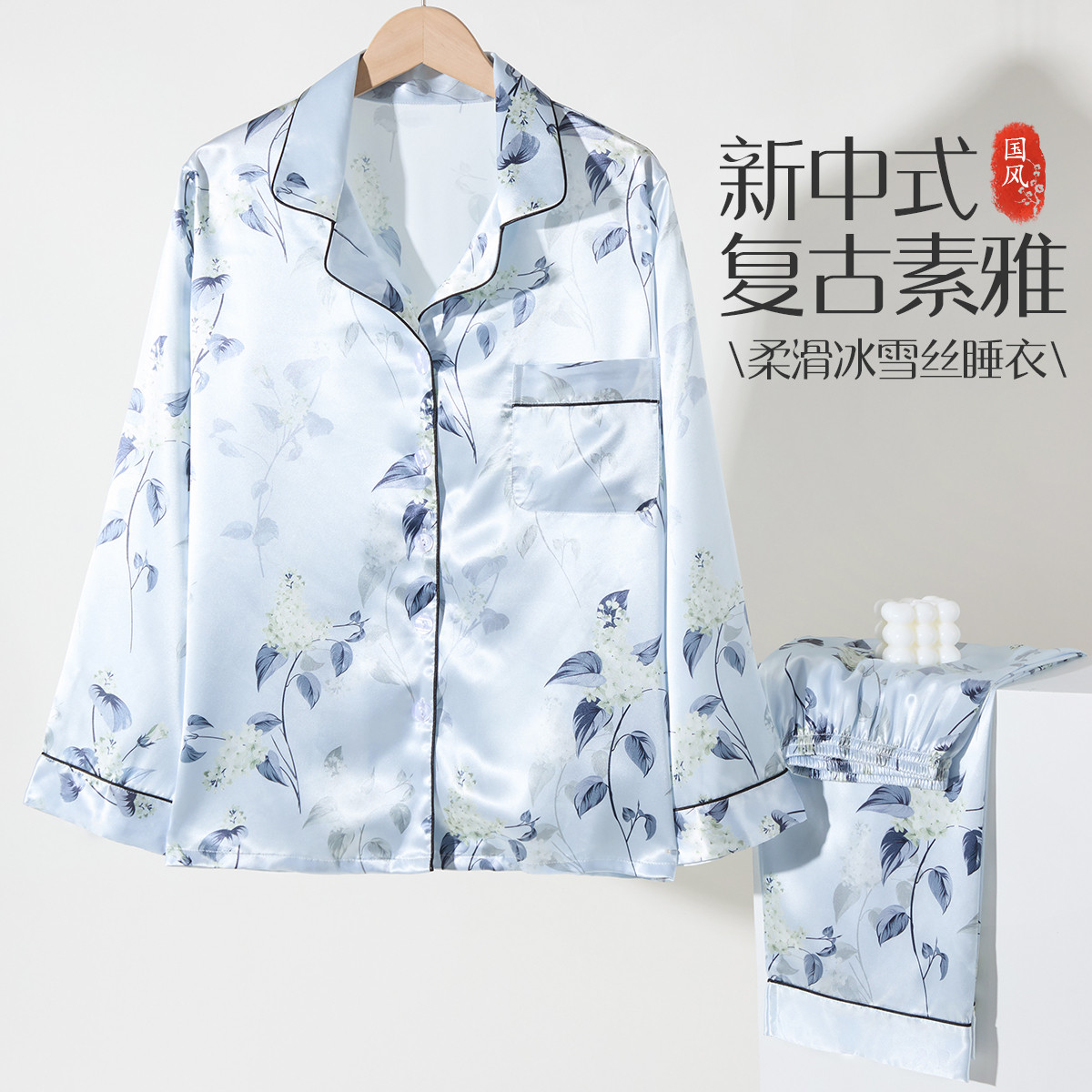 【7A抑菌冰丝】女士冰丝睡衣春秋长袖可外穿家居服睡衣套装女 065995