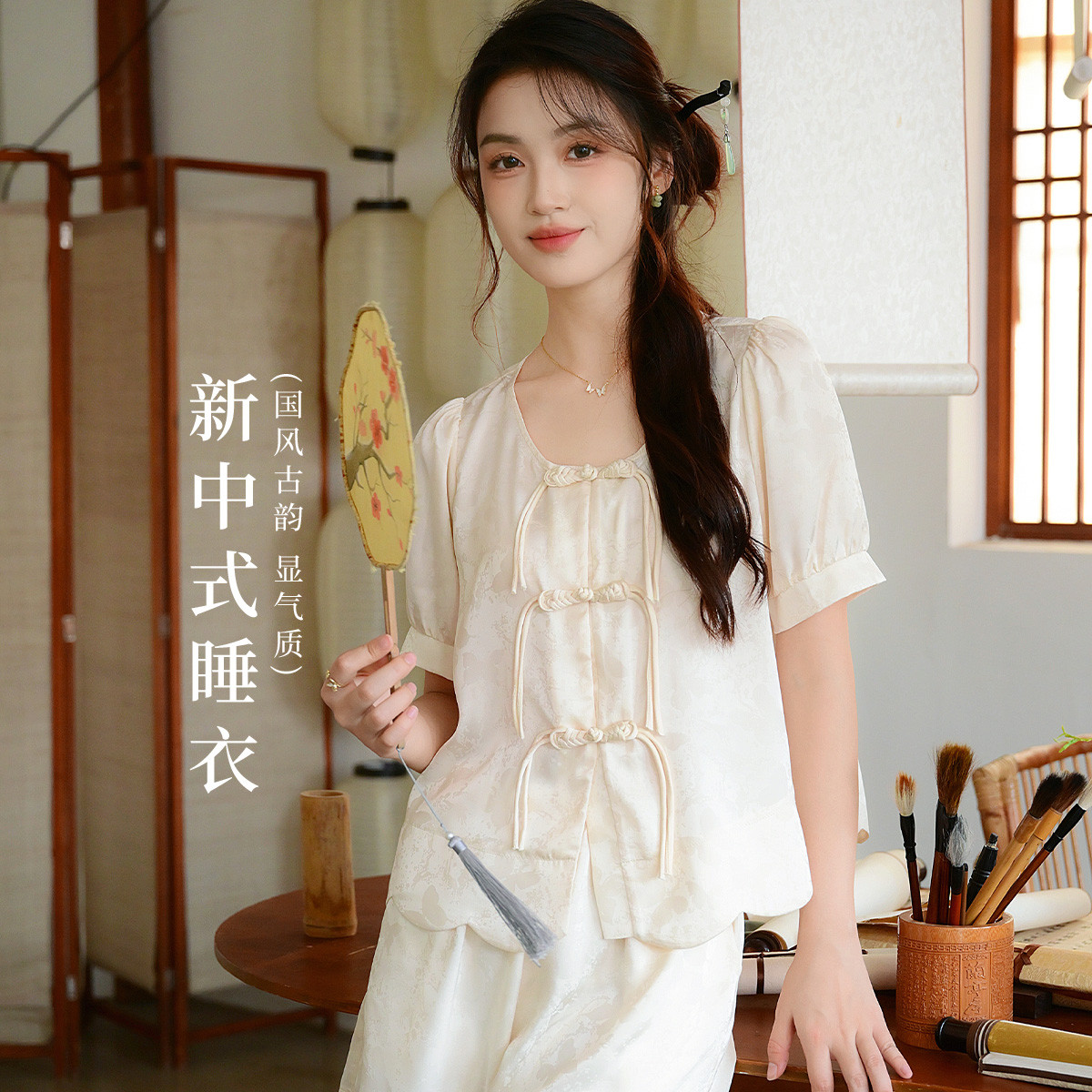 【新中式盘扣】国风气质冰丝睡衣女夏季短袖短裤家居服套装可外穿 720907