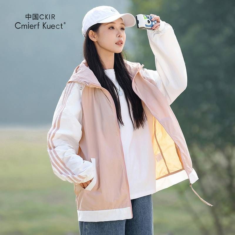 撞色户外运动宽松轻薄防晒衣2025夏季休闲百搭女式外套 102685