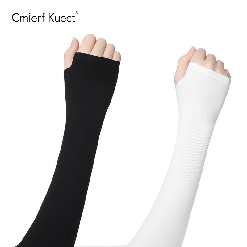 Cmierf Kuect(中国CKIR)冰袖防晒袖冰丝男手套女户外开车骑行长款薄手臂套袖 黑色+白色(两件装)