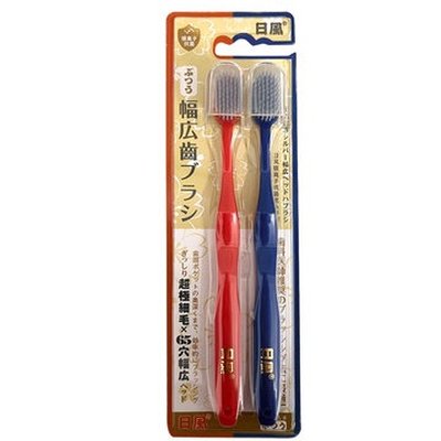 日本 日风 银离子宽头牙刷 2支装 红+蓝
