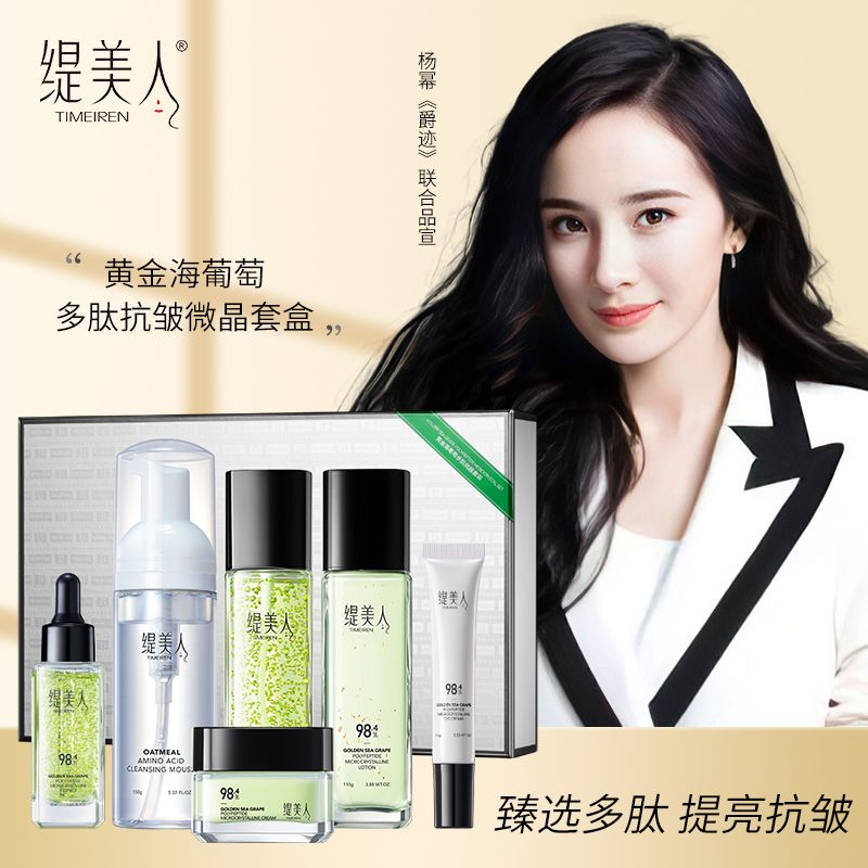 缇美人 黄金海葡萄多肽抗皱微晶套盒补水保湿亮肤六件套 黄金海葡萄多肽抗皱微晶套盒