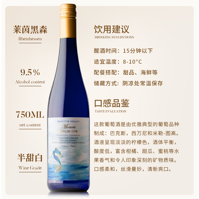 德国原瓶进口红酒 格拉洛梦洛半甜白葡萄酒 750ml*1瓶