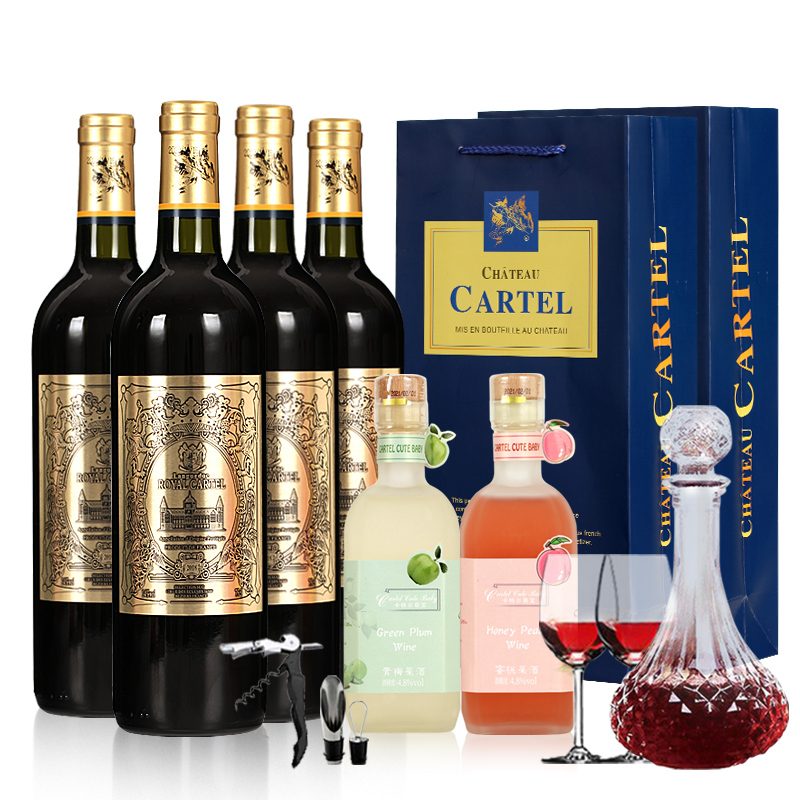 【年货节特惠】卡特尔法国进口金标干红750ml*4支 送高档酒具 送果酒2瓶