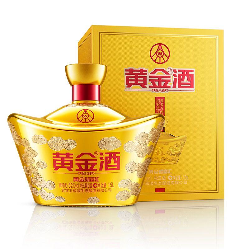 五粮液集团出品黄金酒52度金元宝财富汇高端礼盒松茸酒1500mL 送礼摆柜商务宴请