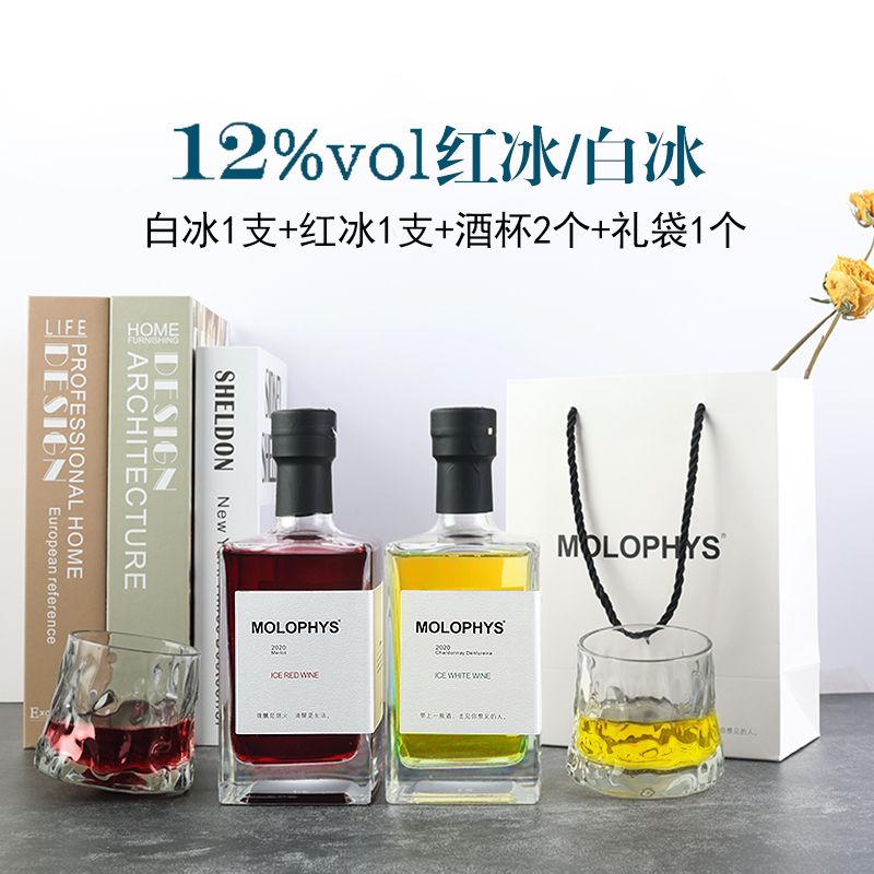 慕洛菲诗白冰/红冰12度 半甜型葡萄酒组合500ml*2瓶+2个杯子+礼品袋