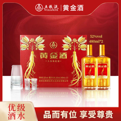 五粮液 仙林生态 黄金酒人参枸杞酒 52度白酒 480ml*2瓶