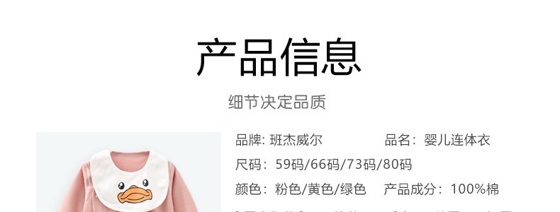商品名称:班杰威尔 婴儿纯棉无骨宝宝哈衣 59cm 四季哒哒鸭绿