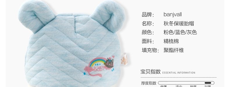 商品名称:班杰威尔 婴儿帽子新生儿加厚胎帽 44cm 调皮猫蓝