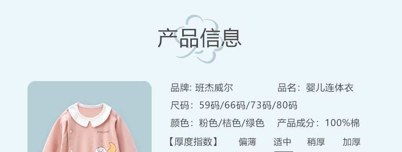 商品名称:班杰威尔 婴儿纯棉无骨宝宝哈衣 66cm 四季棉洋洋粉