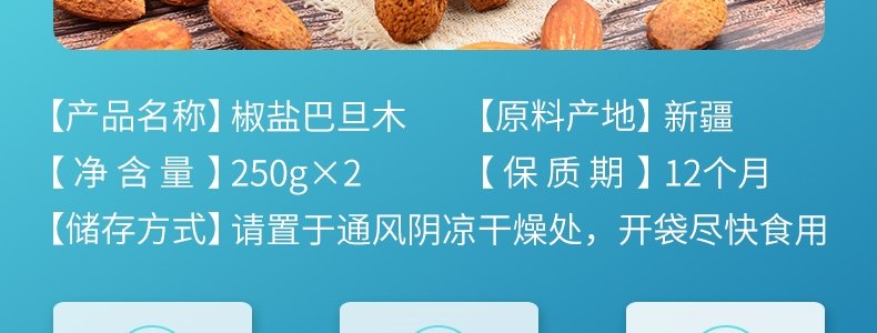 商品名称:古力巴戈 椒盐巴旦木 250克*2袋