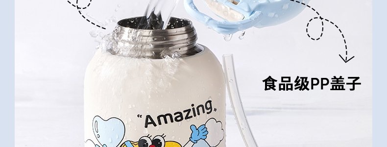 皇宠 大眼萌注水保温碗 400ml 不锈钢单内胆 里瑟橙