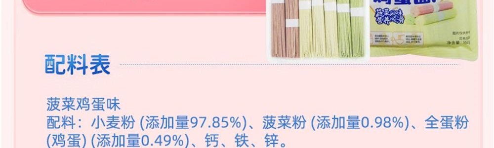商品名称:小鹿蓝蓝 儿童含钙铁锌营养鸡蛋面 350g/袋