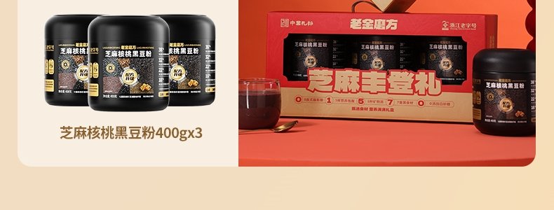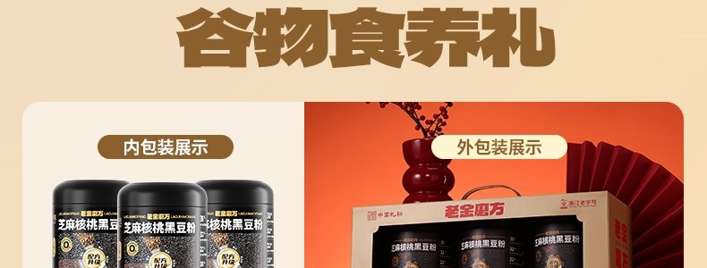 商品名称:老金磨方 年货谷物食养礼 芝麻核桃黑豆粉 700g+山药葛根玉米粉 600g*2罐 包装随机