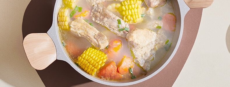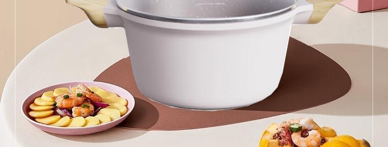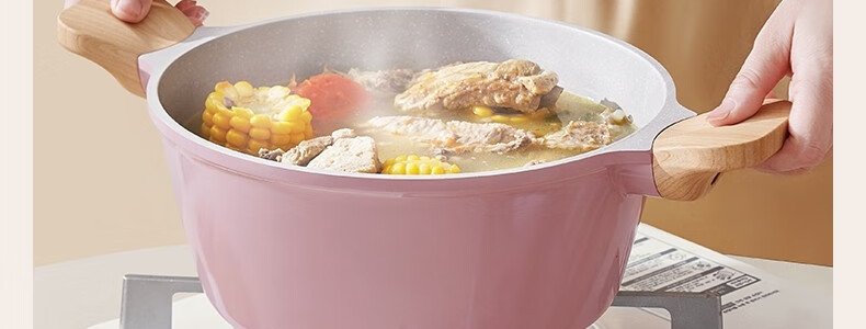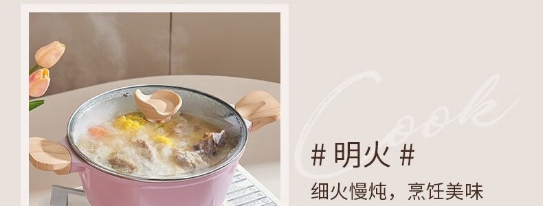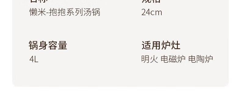 商品名称:懒米 家用麦饭石双耳不粘电炖汤锅 磁炉燃气通用 24CM 白色