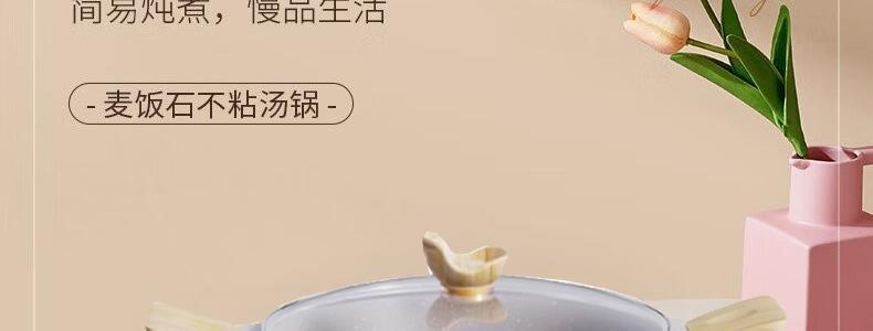 懒米 家用麦饭石双耳不粘电炖汤锅 磁炉燃气通用 24CM 白色