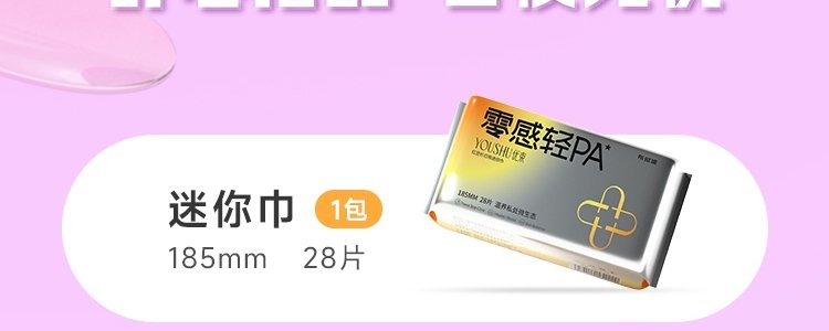商品名称:布班迪 优束红豆杉超薄卫生巾组合套 (日用8片*4包+夜用6片*3包+加长夜用5片*2包+迷你巾28片*1包)